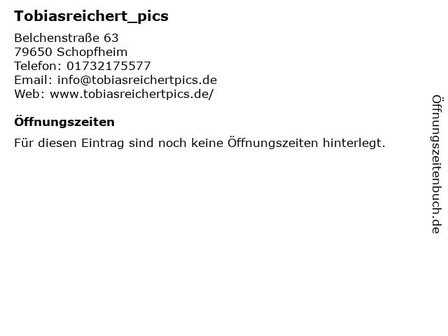 | Öffnungszeiten Tobiasreichert_pics in Schopfheim anzeigen | |