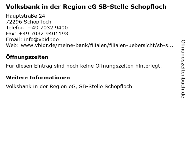 | Volksbank in der Region eG SB-Stelle Schopfloch anrufen | |