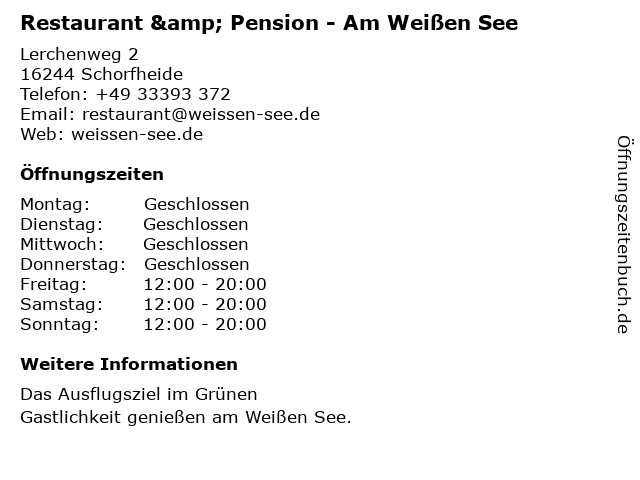 Branchen & Suchbegriffe zu Restaurant & Pension - Am Weißen See:abendessen, ausflug, ausflugsziel, café, essen, feiern, frühstück, gasthaus, gaststätte, hochzeit, kaffee, kuchen, mittagstisch, pension, restaurant, see, sonnenterrasse, torten, weißen, weißen see, zimmer, übernachtung |