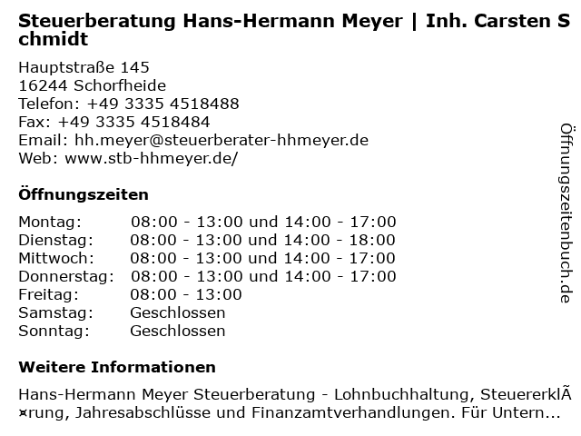 Branchen & Suchbegriffe zu Steuerberatung Hans-Hermann Meyer | Inh. Carsten Schmidt:betriebsprüfung, buchführung, carsten, einkommensteuer, finanzamtverhandlungen, hans, hermann, jahresabschluss, lohn, lohnbuchhaltung, meyer, rechtsanwalt, schenkungssteuer, schmidt, steuerberater, steuerberater in der nähe, steuerberater in schorfheide, steuerberater schorfheide, steuerberatung, steuerbüro, steuererklärung, steuerliche beratung, steuern, steueroptimierung, steuerrecht |