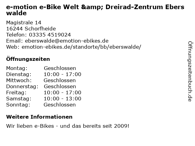 Branchen & Suchbegriffe zu e-motion e-Bike Welt & Dreirad-Zentrum Eberswalde:bike, dreirad, motion, welt, zentrum |