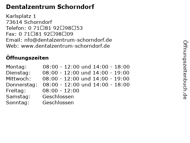 | Öffnungszeiten Dentalzentrum Schorndorf in Schorndorf anzeigen | |