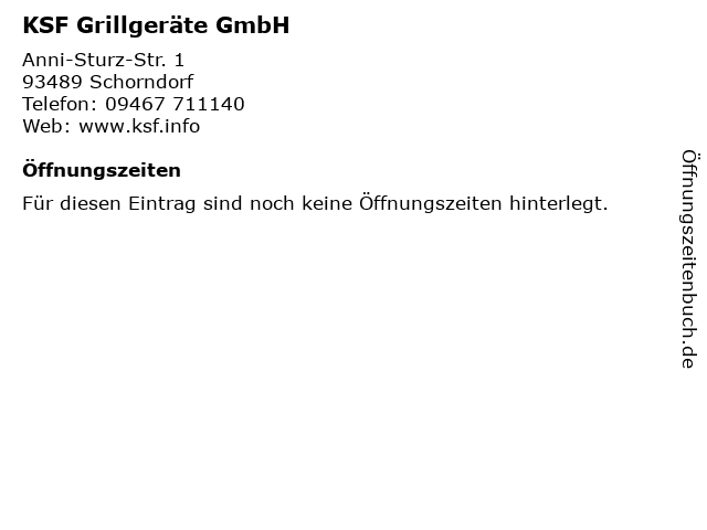 | Öffnungszeiten KSF Grillgeräte GmbH in Schorndorf anzeigen | |