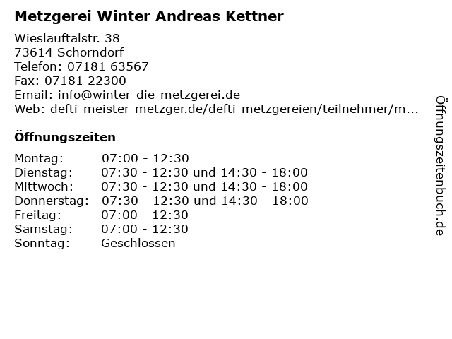 Öffnungszeiten Metzgerei Winter Andreas Kettner