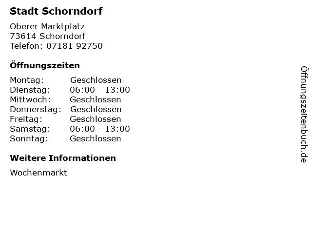| Öffnungszeiten Stadt Schorndorf in Schorndorf anzeigen | |