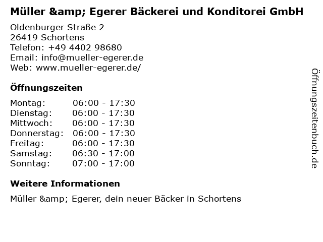 2 Müller & Egerer Bäckerei und Konditorei GmbH (Entfernung: 4,87 km) Adolf-Ahlers-Straße 3, 26441 Jever 4 Müller & Egerer Bäckerei und Konditorei GmbH (Entfernung: 11,30 km) Mühlenweg 146, 26384 Wilhelmshaven 5 Müller & Egerer Bäckerei und Konditorei GmbH (Entfernung: 11,35 km) Freiligrathstraße 199, 26386 Wilhelmshaven 6 Müller & Egerer Bäckerei und Konditorei GmbH (Entfernung: 11,45 km) Flutstraße 94, 26388 Wilhelmshaven |