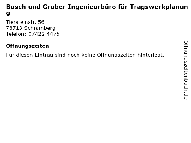 | Bosch und Gruber Ingenieurbüro für Tragswerkplanung anrufen | |
