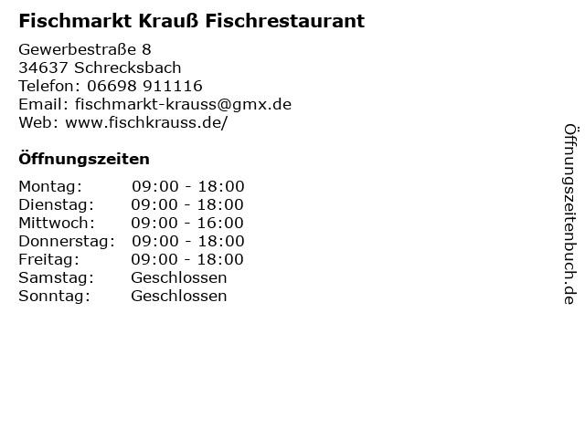 3 Fischmarkt Krauß - mobile Verkaufsstelle Ziegenhain (Entfernung: 8,56 km) Ernst-Ihle-Straße 7, 34613 Schwalmstadt 5 Allianz Versicherung Martin Krauß Hauptvertretung (Entfernung: 12,50 km) Bahnhofstraße 13, 36280 Oberaula 6 |