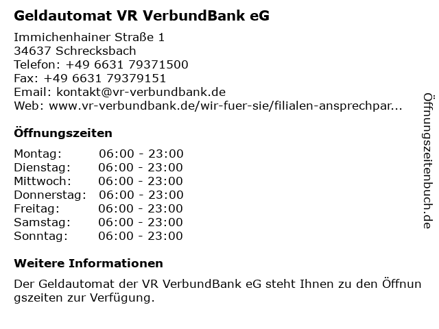 Öffnungszeiten Geldautomat VR VerbundBank eG in Schrecksbach anzeigen