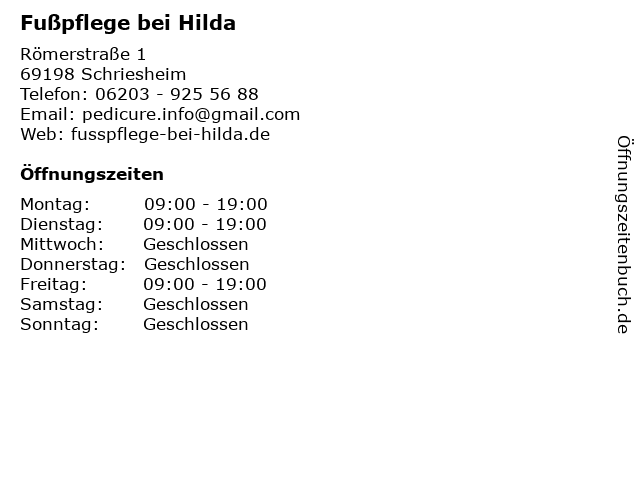 Öffnungszeiten Fußpflege bei Hilda in Schriesheim anzeigen | |