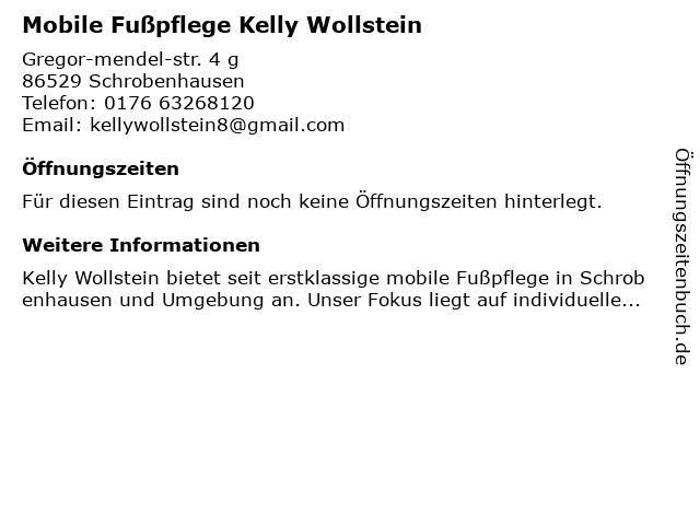 | Mobile Fußpflege Kelly Wollstein anrufen | |