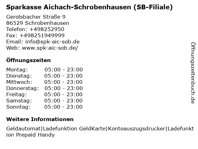 5 Schrobenhausener Bank eG - (SB-Filiale Gerolsbacher Straße) (Entfernung: 0,24 km) Gerolsbacher Straße 15, 86529 Schrobenhausen 6 |