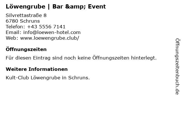 | Öffnungszeiten Löwengrube | Bar & Event in Schruns anzeigen | |