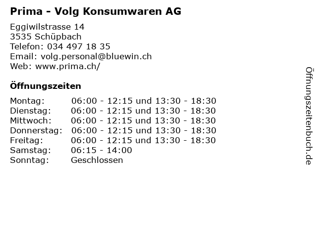Öffnungszeiten Prima - Volg Konsumwaren AG