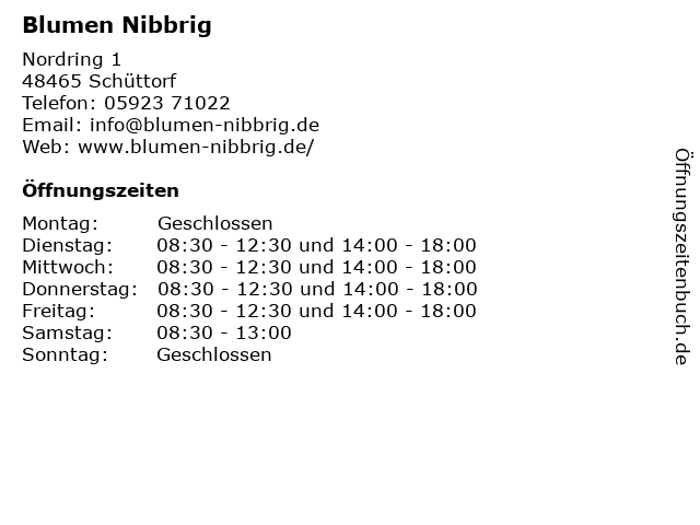 | Öffnungszeiten Blumen Nibbrig in Schüttorf anzeigen | |