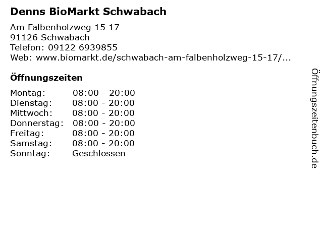 | Öffnungszeiten Denns BioMarkt Schwabach in Schwabach anzeigen | |