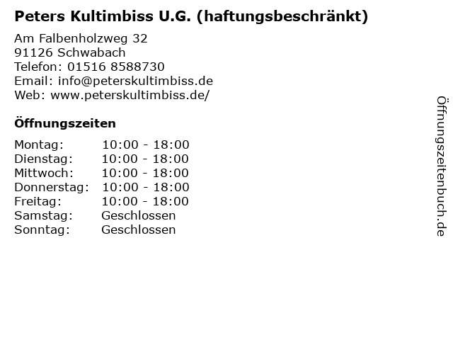 Branchen & Suchbegriffe zu Peters Kultimbiss U.G. (haftungsbeschränkt):haftungsbeschränkt, kultimbiss, peters, u.g. |