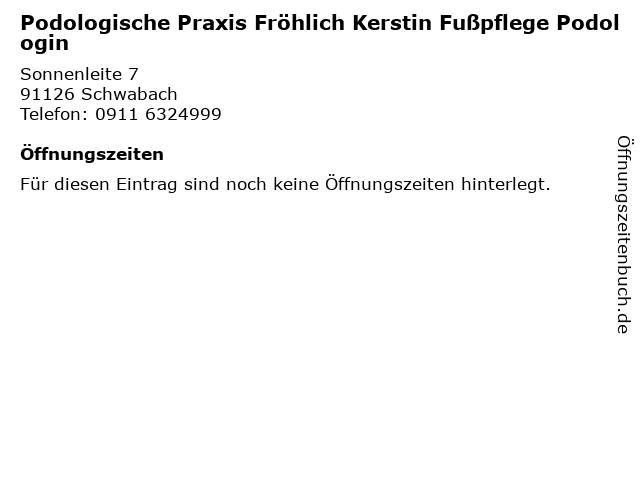 | Podologische Praxis Fröhlich Kerstin Fußpflege Podologin anrufen | |