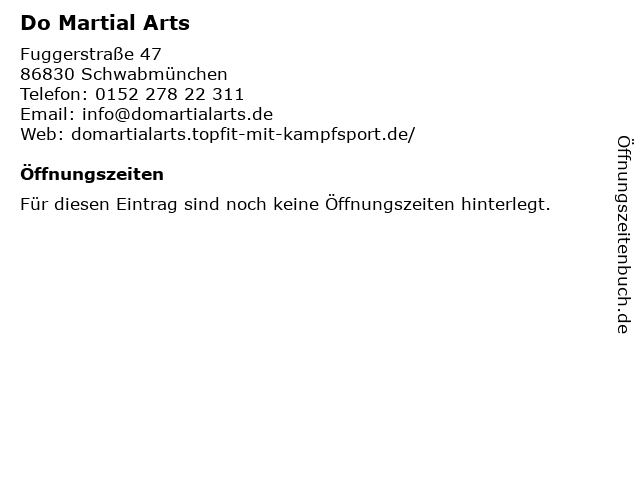 | Öffnungszeiten Do Martial Arts in Schwabmünchen anzeigen | |