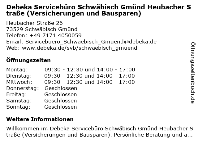 Branchen & Suchbegriffe zu Debeka Servicebüro Schwäbisch Gmünd Heubacher Straße (Versicherungen und Bausparen):altersvorsorge, bausparen, beihilfe, betriebliche vorsorge, debeka, finanzieren, geldanlage, gewerbeversicherung, gmünd, haftpflicht, hausrat, heubacher, immobilienservice, kfz-versicherung, krankenversicherung, lebensversicherung, rechtsschutz, rentenversicherung, schwäbisch, service, servicebüro, straße, versicherung, versicherungen, versicherungsberatung, zahnzusatzversicherung |