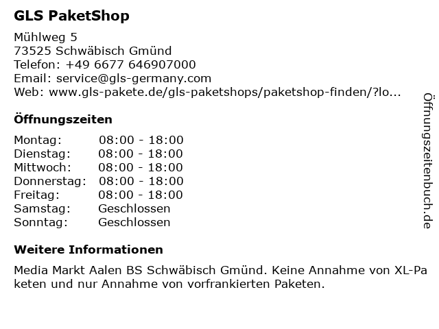 | Adresse GLS PaketShop in Schwäbisch Gmünd anzeigen |