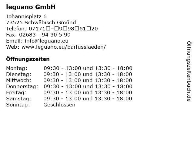 | Öffnungszeiten leguano GmbH in Schwäbisch Gmünd anzeigen | |
