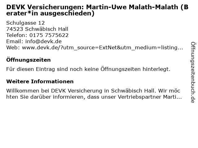 | DEVK Versicherungen: Martin-Uwe Malath-Malath (Berater*in ausgeschieden) anrufen | |