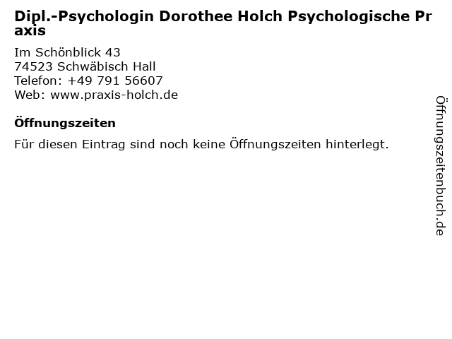 | Dipl.-Psychologin Dorothee Holch Psychologische Praxis anrufen | |