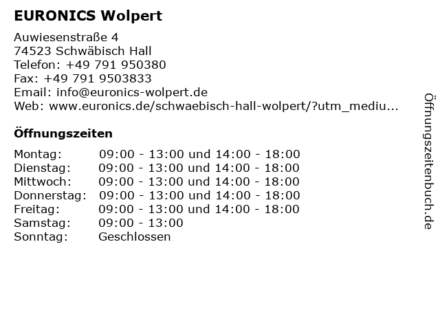 | Öffnungszeiten EURONICS Wolpert in Schwäbisch Hall anzeigen | |