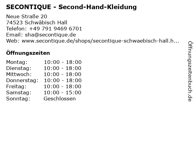 Öffnungszeiten SECONTIQUE - Second-Hand-Kleidung in Schwäbisch Hall anzeigen