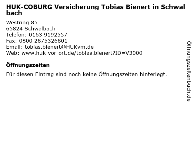 | HUK-COBURG Versicherung Tobias Bienert in Schwalbach anrufen | |