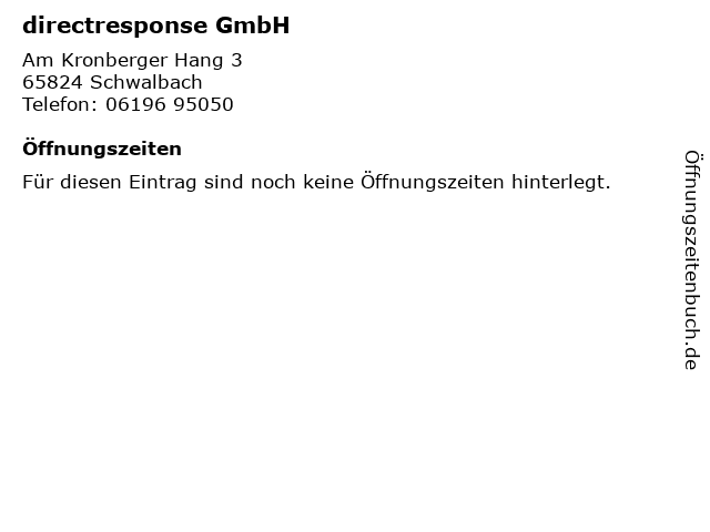 | Öffnungszeiten directresponse GmbH in Schwalbach anzeigen | |