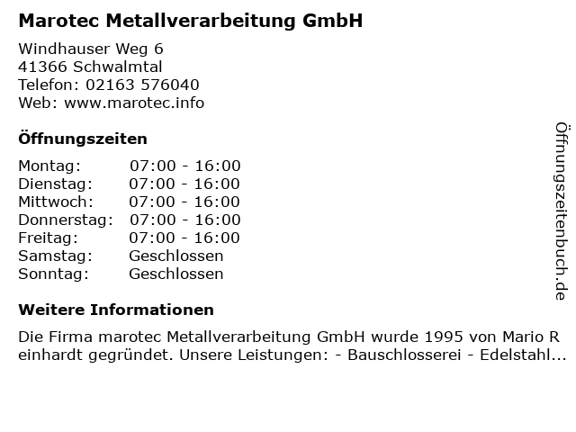 Branchen & Suchbegriffe zu Marotec Metallverarbeitung GmbH:marotec, metallverarbeitung |