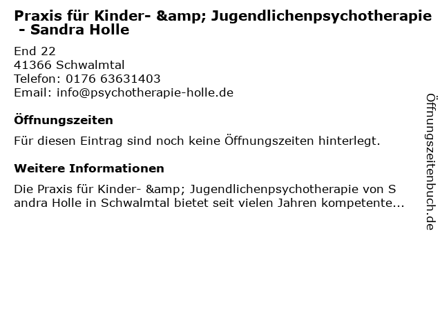 | Praxis für Kinder- & Jugendlichenpsychotherapie - Sandra Holle anrufen | |