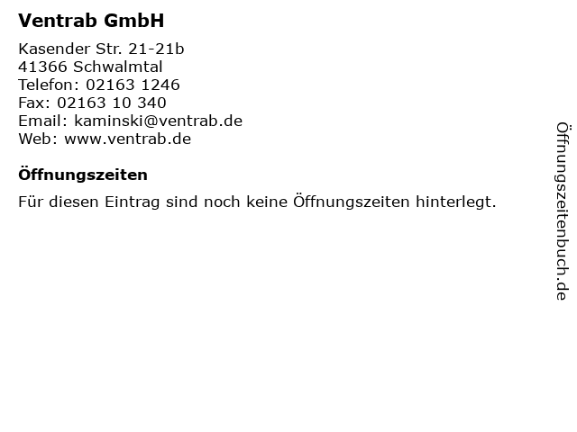 | Öffnungszeiten Ventrab GmbH in Schwalmtal anzeigen | |