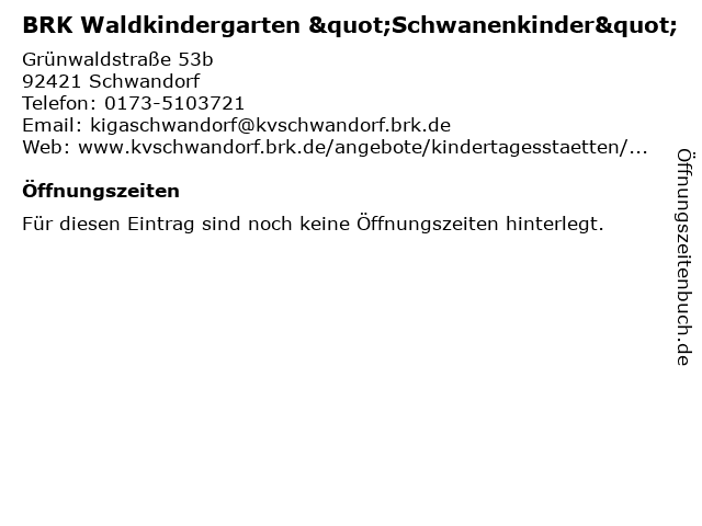 | BRK Waldkindergarten "Schwanenkinder" anrufen | |