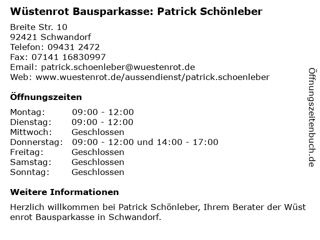 Branchen & Suchbegriffe zu Wüstenrot Bausparkasse: Patrick Schönleber:bausparkasse, patrick, schönleber, wüstenrot |