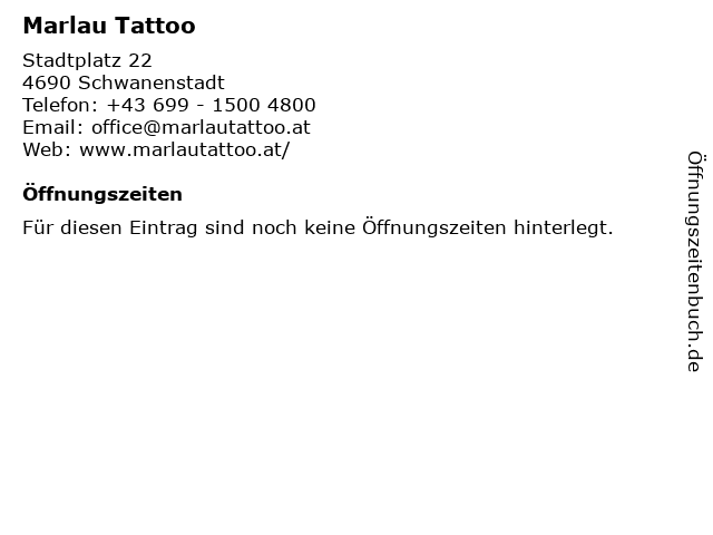 | Öffnungszeiten Marlau Tattoo in Schwanenstadt anzeigen | |