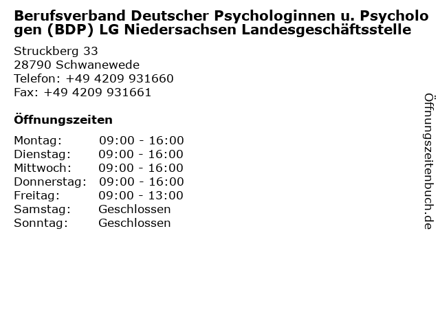 Branchen & Suchbegriffe zu Berufsverband Deutscher Psychologinnen u. Psychologen (BDP) LG Niedersachsen Landesgeschäftsstelle:bdp, berufsverband, deutscher, landesgeschäftsstelle, lg, niedersachsen, psychologen, psychologinnen, u. |