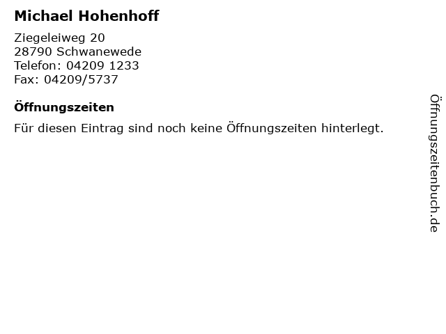 | Öffnungszeiten Michael Hohenhoff in Schwanewede anzeigen | |