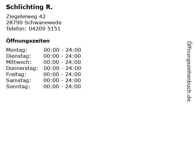 | Öffnungszeiten Schlichting R. in Schwanewede anzeigen | |
