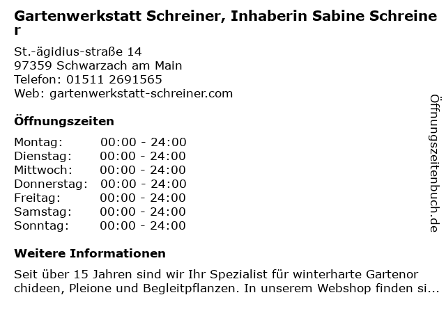Branchen & Suchbegriffe zu Gartenwerkstatt Schreiner, Inhaberin Sabine Schreiner:gartencenter, gartenwerkstatt, inhaberin, sabine, schreiner |