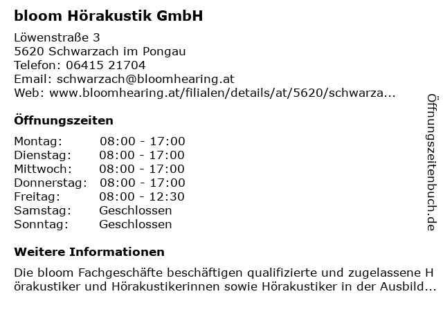 Branchen & Suchbegriffe zu bloom Hörakustik GmbH:bloom, gehörschutz, hörakustik, schwarzach |