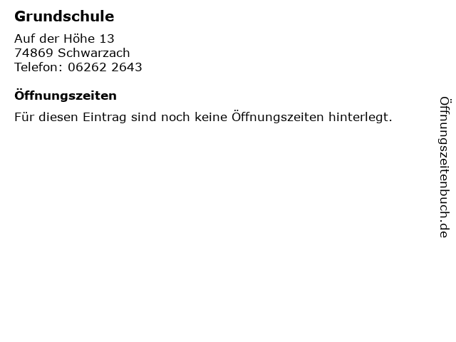 | Öffnungszeiten Grundschule in Schwarzach anzeigen | |