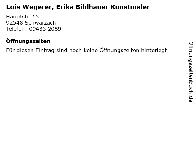 | Lois Wegerer, Erika Bildhauer Kunstmaler anrufen | |
