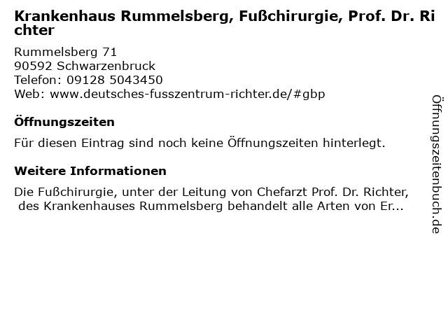 Branchen & Suchbegriffe zu Krankenhaus Rummelsberg, Fußchirurgie, Prof. Dr. Richter:dr., fußchirurgie, krankenhaus, prof., richter, rummelsberg |