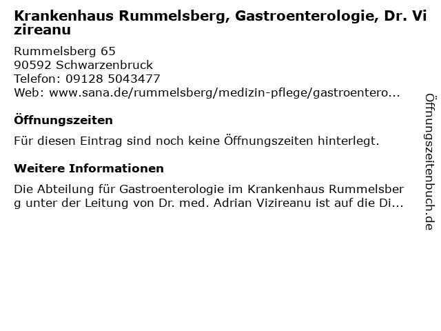| Krankenhaus Rummelsberg, Gastroenterologie, Dr. Vizireanu anrufen | |