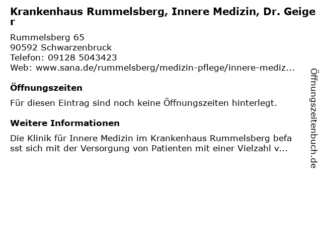 | Krankenhaus Rummelsberg, Innere Medizin, Dr. Geiger anrufen | |