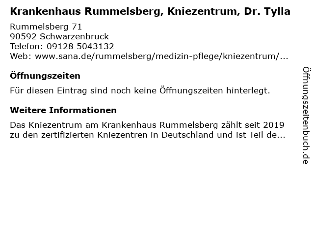 | Krankenhaus Rummelsberg, Kniezentrum, Dr. Tylla anrufen | |