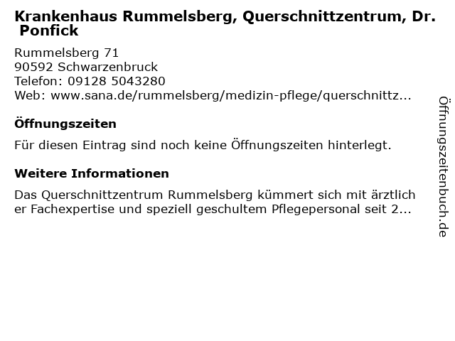 | Krankenhaus Rummelsberg, Querschnittzentrum, Dr. Ponfick anrufen | |